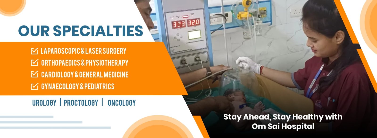 Om Sai Hospital is a trusted name in advanced multi-speciality healthcare, committed to delivering comprehensive medical services under one roof. With a team of highly experienced doctors, modern infrastructure, and state-of-the-art technology, we provide exceptional care across various specialities including cardiology, orthopaedics, neurology, gynaecology, paediatrics, and general medicine. Our focus is on accurate diagnosis, effective treatment, and compassionate patient care. At Om Sai Hospital, we ensure that every patient receives personalized attention, comfort, and quality medical support. We strive to bring health, hope, and healing to our patients with dedication and excellence.